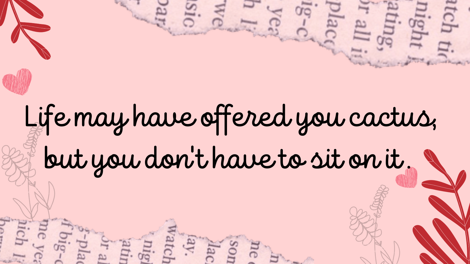 Some days are roses and some are cacti. Problems, ups, and downs, highs, and lows are a part of life. What matters is how you deal with them. If you are given a cactus, do not pretend as if you are asked to sit on it. Sometimes, gazing at it from a distance to see the time pass, would also be one of the purposes.