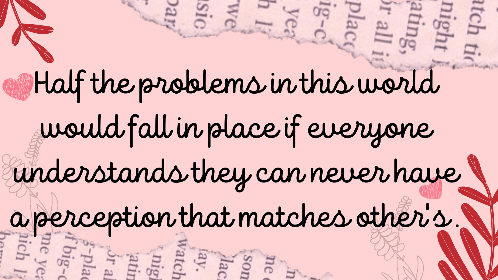 Perception of things, people, and situations is an attribute that keeps evolving, learning, and changing. We learn from our experiences and mistakes, and hence our perception develops accordingly. Everybody has a different past, a different set of mistakes and so different learning too. Hence to expect that the perception of two people matches exactly is only an imaginary thing.